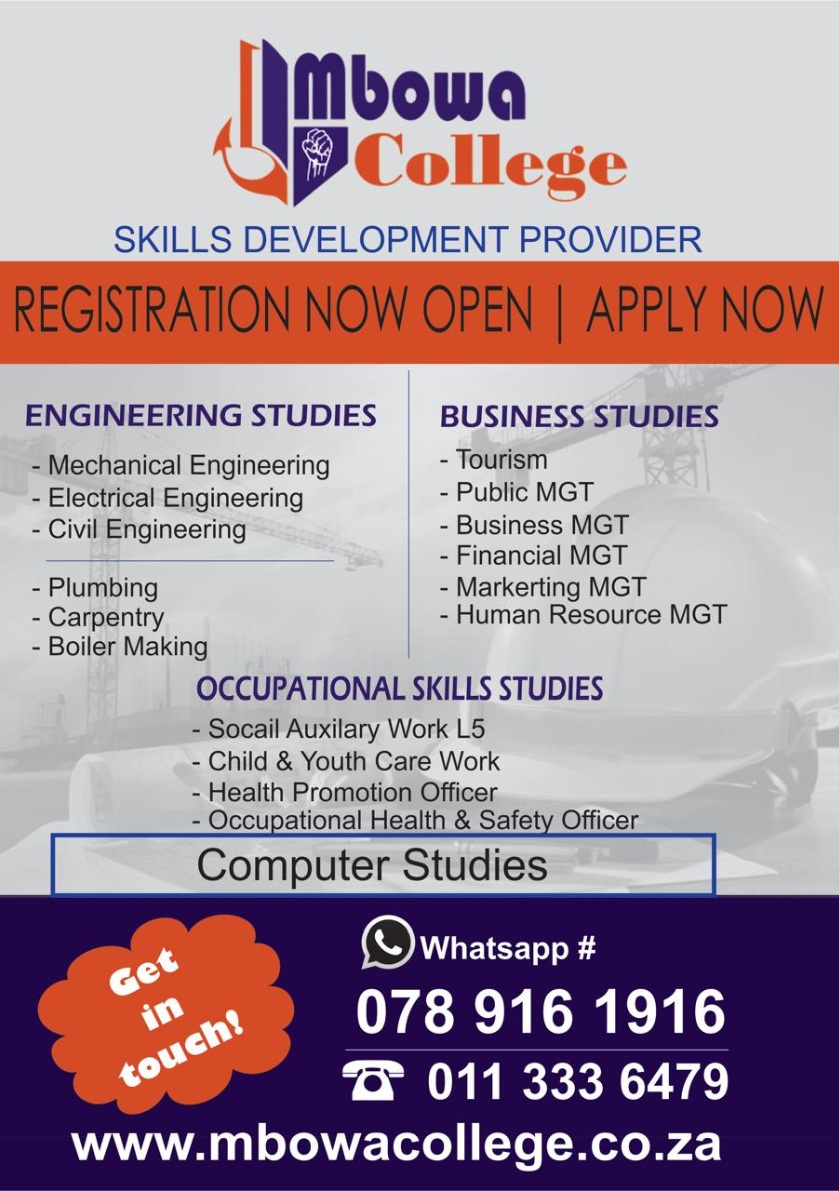 Learn Metro Policing, Forensic, Applied legislation View more hereMbowa College is registered with the National Department of Higher Education and Training , Basic Education /Gauteng and Accredited by QCTO, UMALUSI and Mictseta.
